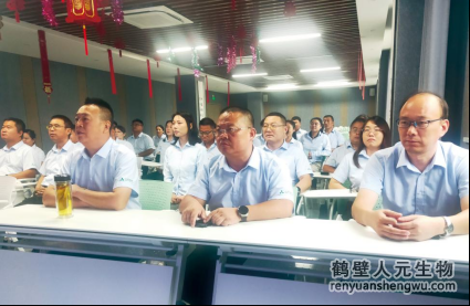 9月3日上午,于鶴壁市東楊工業(yè)區(qū)人元生物技術(shù)發(fā)展有限公司(文中簡(jiǎn)稱人元生物)二樓會(huì)議室,窗外一場(chǎng)金風(fēng)送爽的秋雨方歇,室內(nèi)全體人員正襟危坐、著裝齊整、神情莊重,目不轉(zhuǎn)睛地注視著大屏幕,耳畔傳來(lái)自大屏幕的渾厚聲音: